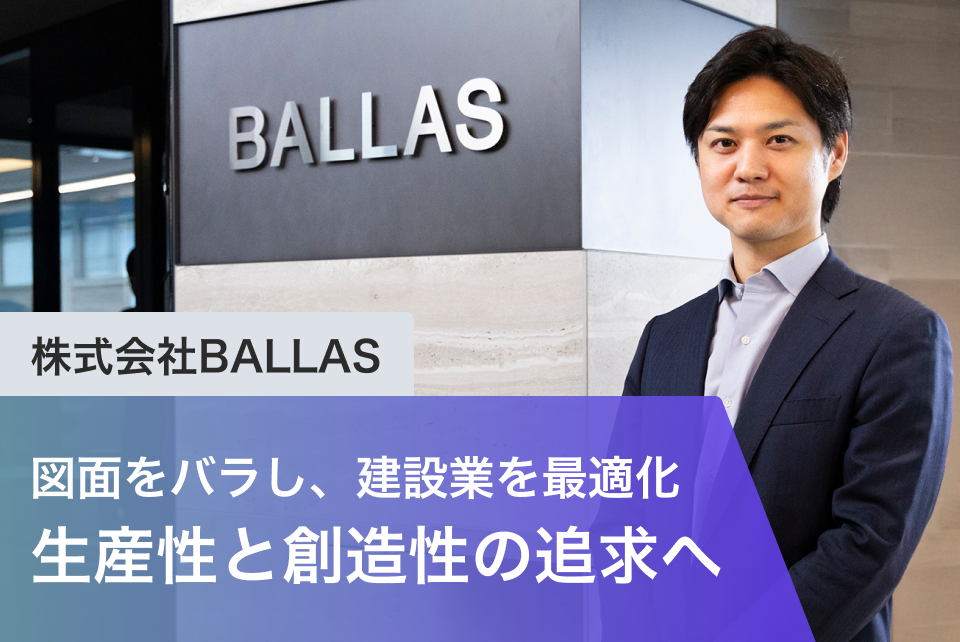 世界で2,500兆円、GDPの実に10%を占める建設業界。しかし、同業界は長らく生産性の向上や人手不足など、様々な課題を抱えてきました。今、そんな建設業界の課題を解消する企業として期待されているのが株式会社BALLAS(バラス)です。建設部材の調達を最適化するプラットフォーム「BALLAS」を提供することで、業界全体の生産性と創造性を高め、建設業界から社会全体を幸せにしていく。大きな使命を追いかける同社の代表取締役、木村将之さんにこれまでの創業ストーリーと今後の展望を伺いました。