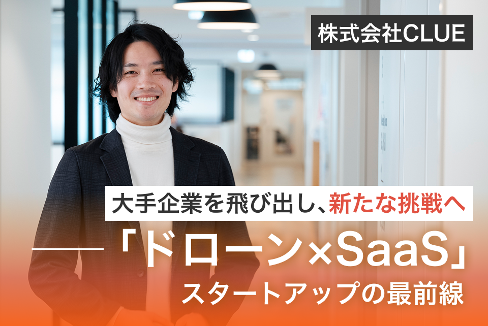 屋根点検ソフト『DroneRoofer』や建設現場向け『ドローン施工管理くん』など、ドローンを活用した、さまざまな法人向けソフトウェアを提供する株式会社CLUE。国内で唯一となるSaaSモデルを採用することで、単なるハードウェアの提供にとどまらず、顧客の課題解決を支援しています。そんなCLUEの根元にあるのは、「テクノロジーを社会実装し、世の中の不を解決したい」という想い。ドローンに限らず、ロボティクスやIoTなどの最先端技術を活用したDX推進にも注力し、社会に新たな価値を生み出すことを目指しています。今回取材したのは、法人事業部の部長を務める酒井裕太さん。大手人材サービス会社で4年半のキャリアを持つ酒井さんに、大手企業からスタートアップ企業に転職した理由をお聞きしました。