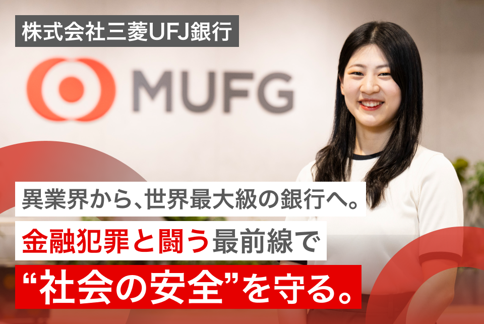 金融犯罪への対策は、いまや世界中の金融機関にとって不可欠な取り組みとなっています。特に「AML(Anti-Money Laundering/マネー・ローンダリング防止)」と呼ばれる金融犯罪対策業務は、専門職として一大領域へと発展。その最前線で金融犯罪リスクと向き合っているのが、世界最大級の金融グループである三菱UFJ銀行、グローバル金融犯罪対策部に所属する藤田那々子さん。前職で電子部品メーカーの営業企画部に所属していた藤田さんは、異業界からこの専門性の高い領域へとチャレンジしました。本記事では、藤田さんのキャリア選択と挑戦、そしてAML業務のダイナミズムと三菱UFJ銀行という舞台の魅力に迫ります。