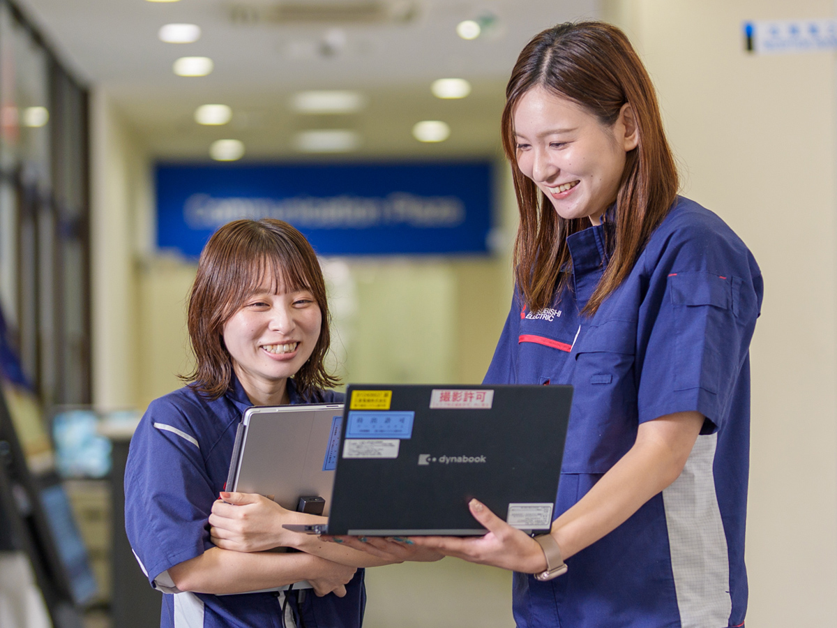 また、将来的に働き方を変えたり、働く場所を変えたくなることがあっても、三菱電機であれば会社を変えることなくずっと働き続けられます。現時点で将来が決まっていなくても心配ありません。上司との1on1を通じてキャリアを考えたり、やりたいことを見つけることができるからです。たくさんの可能性と選択肢が用意された職場で、ぜひ私たちと一緒に頑張りましょう。