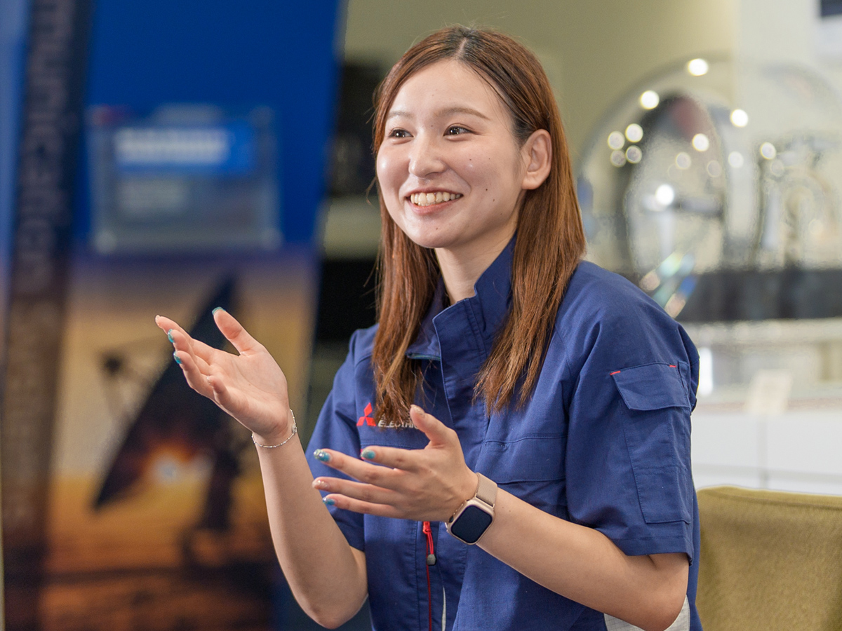 いろんな企業を見た中で、当社に興味を持った理由は、世界最高峰の技術で社会に貢献する社風が魅力的だったからです。私自身、ハンドボールプレイヤーとして常に高みを目指してきたこともあり、宇宙分野や防衛分野、社会インフラ、通信など幅広い領域で、世界をリードする技術を持ちながら、さらにより良い未来のために変わり続ける社風に憧れ、業界最高水準を誇る企業に身を置きたいと思いました。