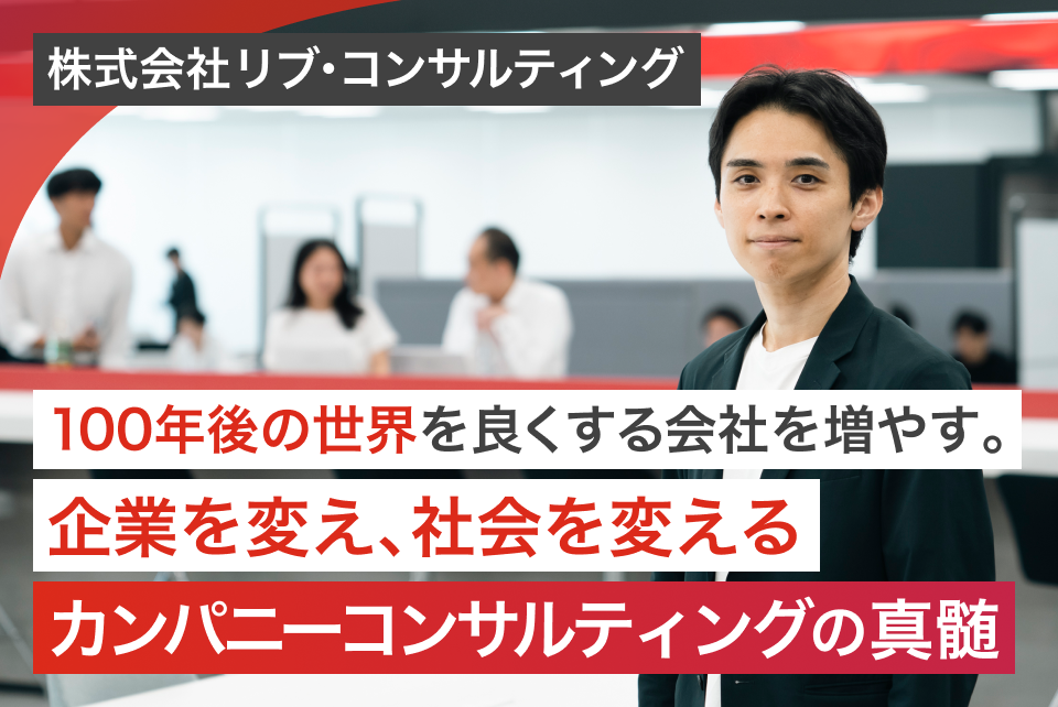 株式会社リブ・コンサルティングは、単発の機能別支援ではなく、事業と組織の“両輪”を前進させる独自の「カンパニーコンサルティング」を掲げる、新しい形のコンサルティングファームです。ミッションは「100年後の世界を良くする会社を増やす」。耳触りの良いスローガンに留めず、セオリー化しにくく難易度の高い新規事業・事業変革の現場に、経営アジェンダごと伴走する姿勢を貫いています。今回お話を聞いたのは、執行役員CHROの武山慎吾さん。三菱商事、ボストン・コンサルティング・グループ(BCG)、ファーストリテイリングを経て、リブ・コンサルティングに参画。採用・育成・組織開発を統括する同氏に、会社の魅力について語っていただきました。