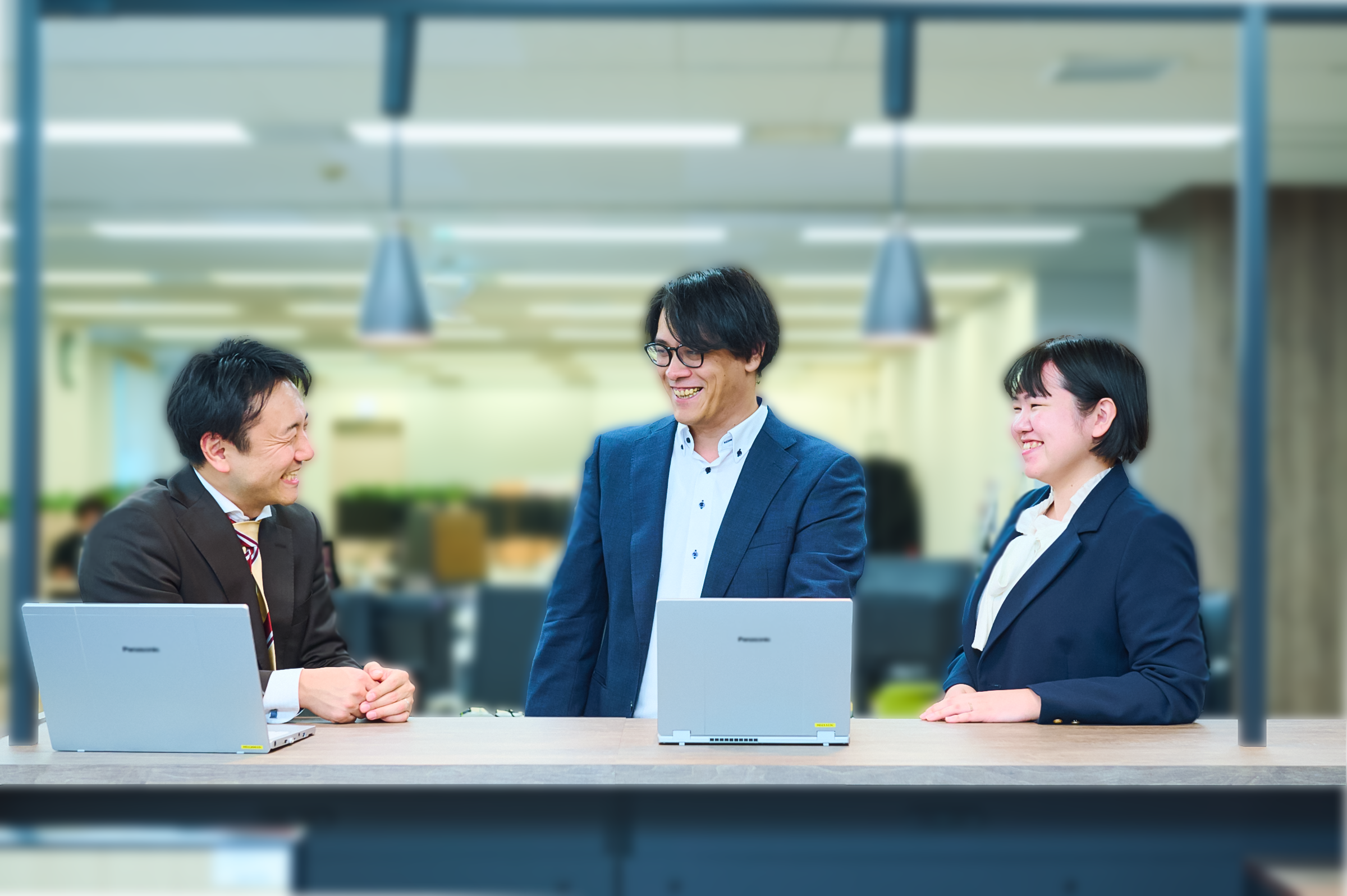 セキュリティ研究センター主幹であり、国際的に知られたホワイトハッカーでもある凌(しのぎ)翔太さん、エンジニアチームのマネジメントとして邁進する大滝聡さん、若手でありながらお客様から強い信頼を獲得しているITエンジニアの菊井麻衣さん。この3人に話を伺った。