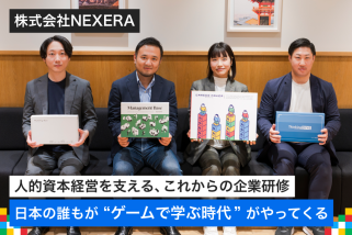 テーブルに広がるボード、山積みになったカード、周囲に響く歓声やため息。人を夢中にさせる“ゲーム”の力を企業の人材育成に活用する——。そんな新しい学びの形をつくっているのが、株式会社NEXERAだ。創業以来「世界を代表するゲーム学習の会社になる」をビジョンに掲げ、マーケティング、キャリアデザイン、マネジメントと研修テーマを広げてきた。 人的資本経営が浸透し、企業の“学ばせ方”が変わる中、NEXERAが提供する価値とは何なのか? 一般的な研修とは、どう異なるのか? そして、メンバーたちはどんな思いで働いているのか?代表の飛田さん、事業推進室長の野北さん、コーディネーターの仙䑓さん、大塚さんに話を聞いた。